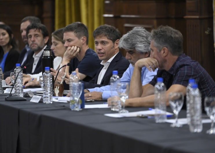 El gobernador de la provincia de Buenos Aires, Axel Kicillof, se reunió este jueves junto con los ministros de Producción, Ciencia e Innovación Tecnológica, Augusto Costa, y de Trabajo, Walter Correa, con representantes de trabajadores y empresarios de las industrias textil y del cuero para evaluar el impacto de las medidas del Gobierno nacional en la actividad.